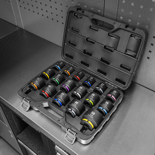 Lock-On™ Standard & Deep Impact Socket Set 34pc 1/2"Sq Drive 6pt Metric [AK5636M]