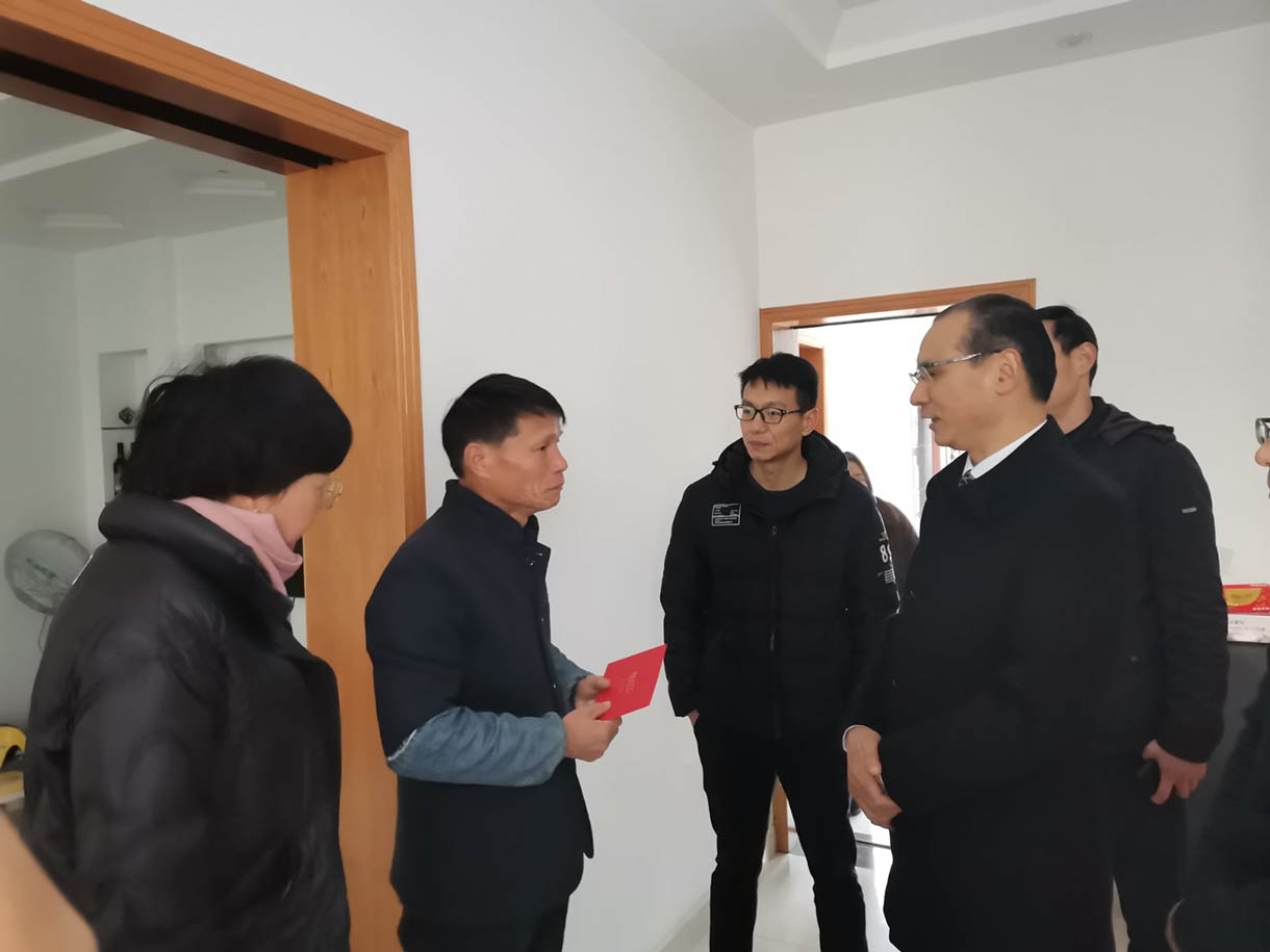 1月13日上午,在东吴镇工会主席徐荣、童一村党总支书记陆文波、童一村妇女主任应忠燕的陪同下,施董一行走访慰问结对帮扶村17户因病致贫的困难群众,为他们送去了慰问金及新年的问候。