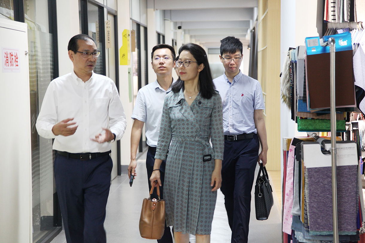 陈副部长一行参观了面料区、展厅、路演区等共享区域,并对园区入驻企业类型和发展情况进行了解。