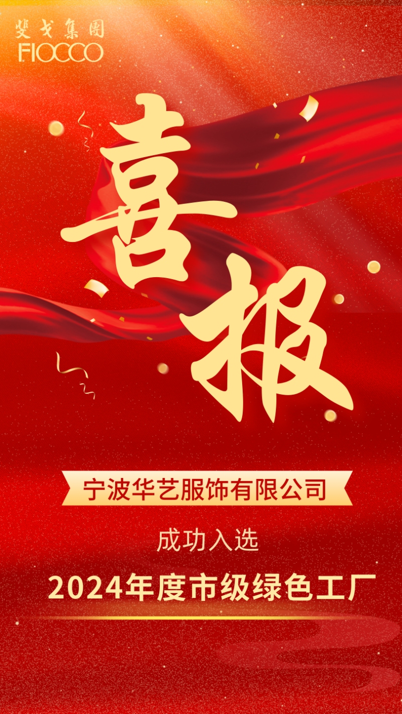 近日,宁波市经济和信息化局公布了《宁波市级绿色制造名单(第五批)》,宁波华艺服饰有限公司位列其中。