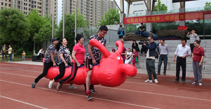 2015年5月9日,东郊街道第六届趣味运动会在宁波市新城第一实验学校圆满落幕。斐戈集团的15名运动员在工会主席朱鲁娜的带领下参加了拔河、羽毛球、乒乓球、篮球等10个比赛项目。